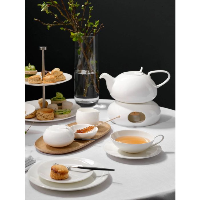 Het stoofje is gemaakt van hoogwaardig Fine Bone porselein. Dit materiaal staat bekend om zijn sterkte en krasbestendigheid. De warme witte kleur heeft een subtiele glans die de rustige, tijdloze uitstraling van de serie mooi benadrukt.