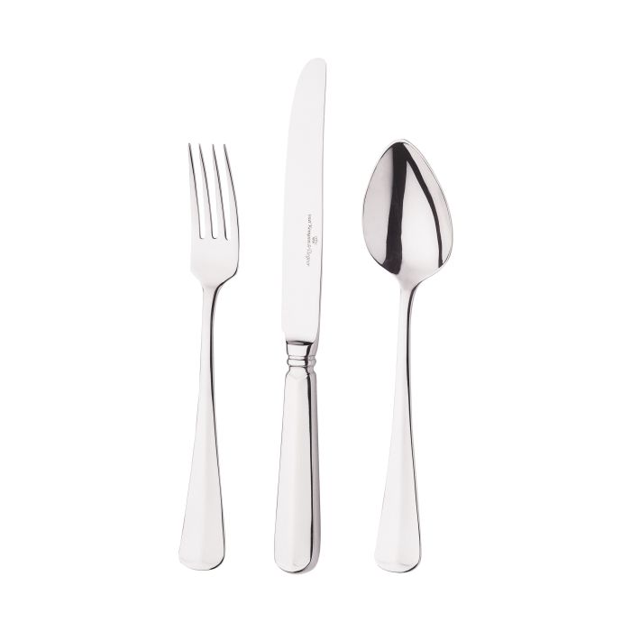 3 tafellepels, 3 tafelvorken, 3 tafelmessen, 3 dessertlepels, 3 dessertvorken en 3 dessertmessen.