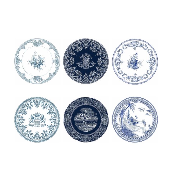 Gien Les Dépareillées Bleu Dessertbord 22 cm + 23 cm - set van 6