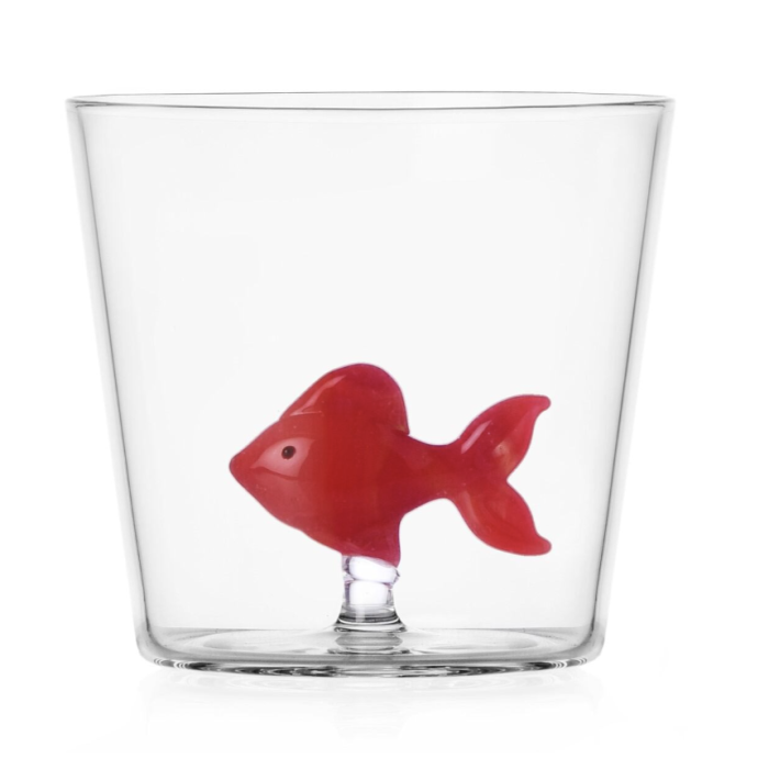Nieuw van Ichendorf Milano: waterglas met Red Fish uit de Animal Farm Collectie. Dit handgemaakte waterglas, ontworpen door Alessandra Baldereschi, is een prachtig stukje kunst. Het glas is vervaardigd uit duurzaam borosilicaatglas, wat het zowel licht als sterk maakt. De verfijnde goudvis (Red Fish) in het glas voegt een speels en elegant element toe, waardoor dit glas niet alleen functioneel is, maar ook een artistieke uitstraling heeft.