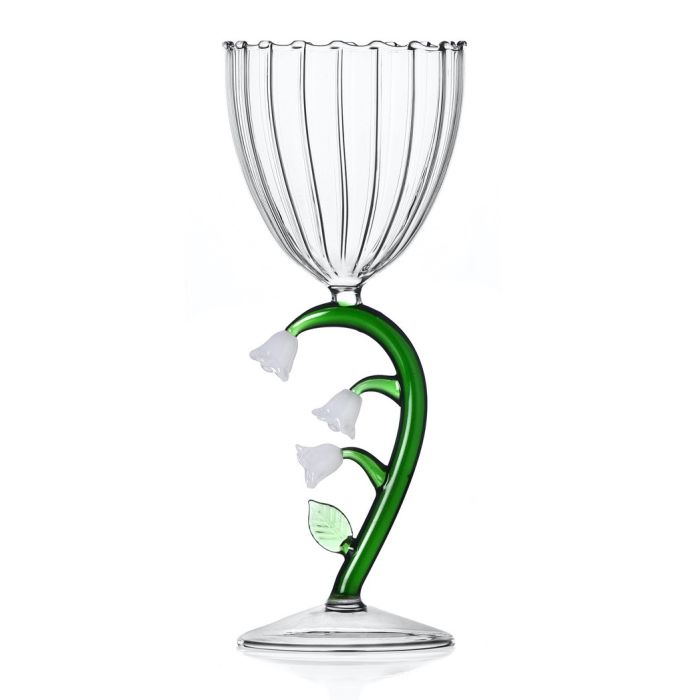 Breng de natuur op tafel met dit fraaie handgemaakte voetglas met witte bloemen uit de Botanica collectie. Ontwerp: Alessandra Baldereschi