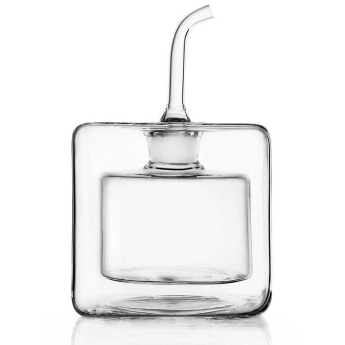 Presenteer olijfolie op unieke wijze met deze Ichendorf Milano ‘Cube' dubbelwandige oliefles (170ml). Gevuld geeft deze fles een bijzonder effect door de dubbelwandige uitvoering. Eigentijds fijn Italiaans glaswerk gemaakt van duurzaam borosilicaatglas. Ontwerper: Corrado Dotti