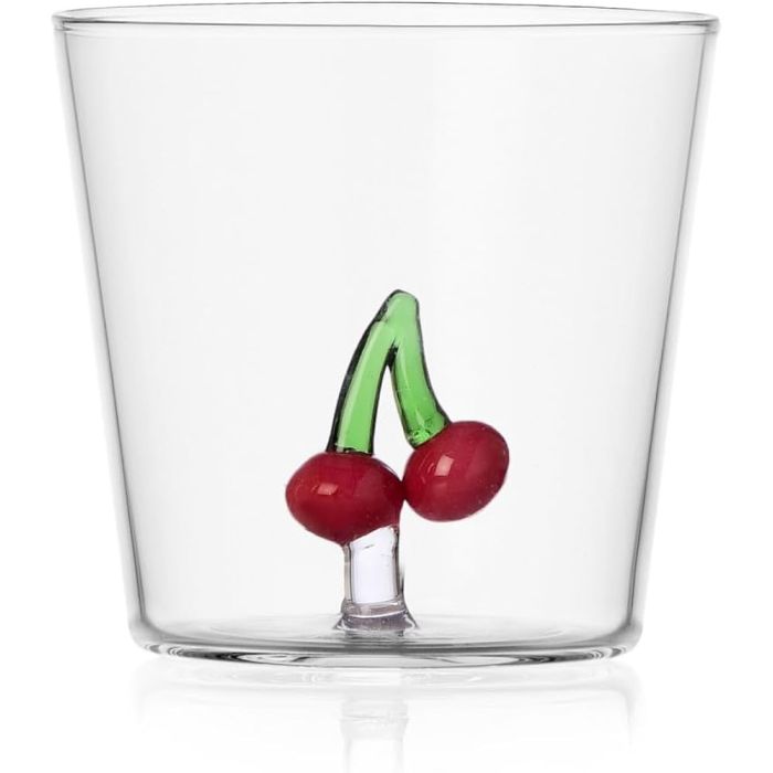 Fraai design en handgemaakt waterglas ‘cherries’ uit de Fruits and Flowers-collectie van Ichendorf Milano. Ontwerp: Alessandra Baldereschi.