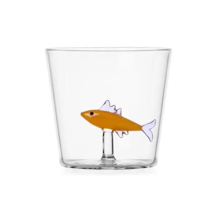Fraai design en handgemaakt waterglas 'sardine' uit de Marine Garden collectie van Ichendorf Milano. Ontwerp: Alessandra Baldereschi.