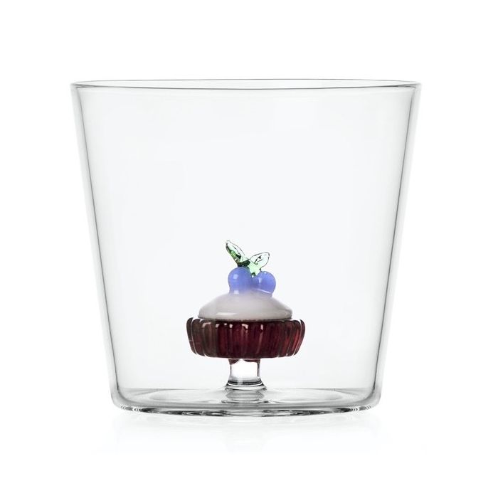 Breng een vleugje zoetigheid op tafel met dit waterglas uit de geheel nieuwe Patisserie collectie van Ichendorf Milano. Dit glas is vervaardigd uit hoogwaardig borosilicaatglas en bevat een handgemaakte miniatuur Blueberry Cake, die speels en verfijnd in het midden schittert. Een ontwerp van Alessandra Baldereschi, waarin elegantie en oog voor detail samenkomen.