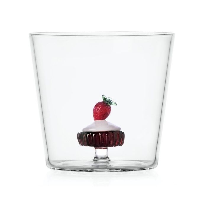 Breng een vleugje zoetigheid op tafel met dit waterglas uit de geheel nieuwe Patisserie collectie van Ichendorf Milano. Vervaardigd uit hoogwaardig borosilicaatglas en voorzien van een handgemaakte miniatuur aardbeiencake die als speelse verrassing in het midden schittert. Ontworpen door Alessandra Baldereschi met oog voor detail en elegantie, is dit glas een ode aan verfijnd vakmanschap.