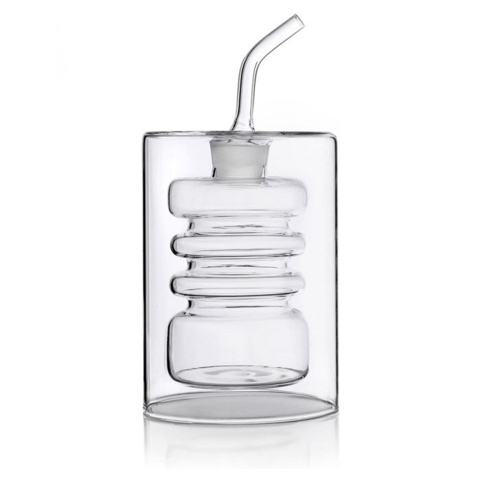 Presenteer olijfolie op unieke wijze met deze Ichendorf Milano ‘Rings’ oliefles (130 ml). Gevuld geeft deze fles een bijzonder effect door de dubbelwandige uitvoering. Ontwerper: Corrado Dotti
