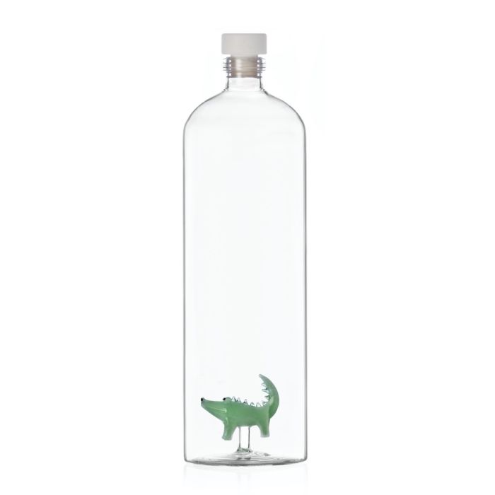 Haal de savanne in huis met deze handgemaakte fles uit de nieuwe Savannah-collectie van Ichendorf Milano. Middenin de fles prijkt een groene krokodil, speels ontworpen door Alessandra Baldereschi. Vervaardigd uit duurzaam borosilicaatglas is het licht, sterk, krasbestendig én vaatwasserbestendig (lage temperatuur aanbevolen). Daarmee is het niet alleen een blikvanger op tafel, maar ook praktisch voor dagelijks gebruik. Een verzamelwaardig object dat perfect aansluit bij de rest van de collectie.