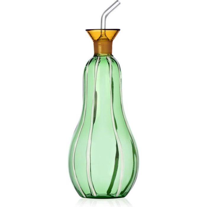 Deze fraai ontworpen en handgemaakte oliefles (300 ml) in de vorm van een courgette behoort tot de Vegetables-collectie van Ichendorf Milano. Ideaal te combineren met de andere gedecoreerde glazen uit deze collectie die elk een andere groente vertegenwoordigen. Ontwerp: Alessandra Baldereschi.