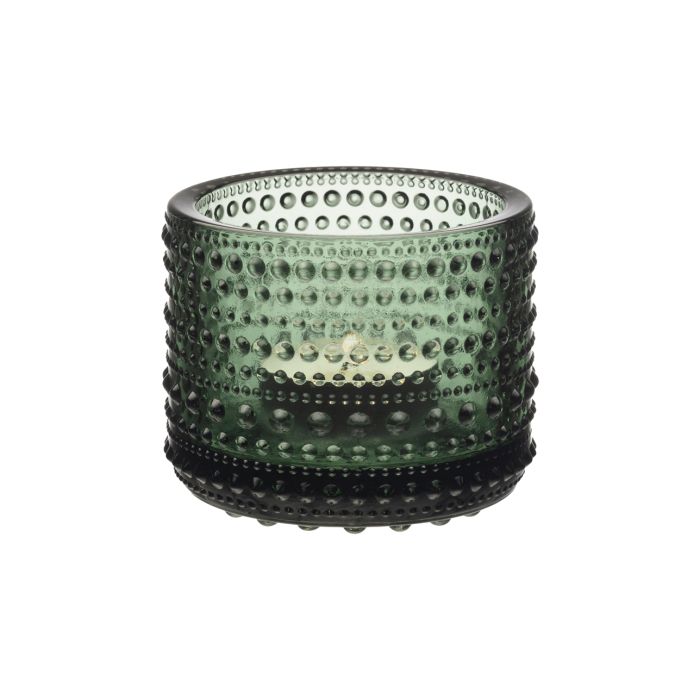 De Kastehelmi-collectie van het Finse merk Iittala bestaat uit een breed scala aan veelzijdige stukken waaronder dit theelicht. De stukken zijn functioneel en decoratief tegelijk. De zachte gloed van het Kastehelmi-sfeerlicht zorgt voor een warme ambiance. De heldere groene kleur straalt een nonchalante verfijning uit, die in elk interieur past.