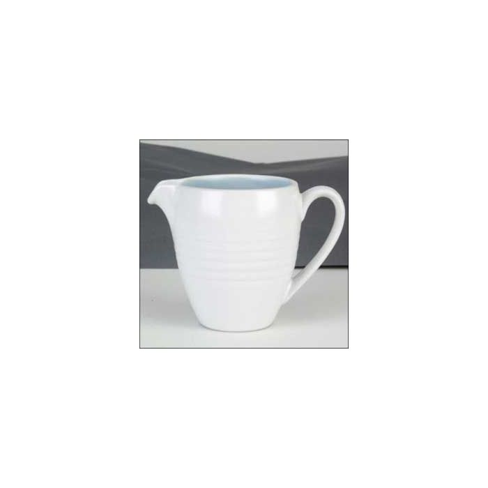 Johnson Brothers melkkannetje uit de serie Cool Mist. De buitenkant van dit melkkannetje is wit, de binnenkant is licht blauw.
