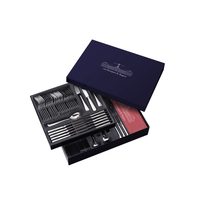 Het bestek wordt geleverd in een luxe cassettedoos, die los wordt meegeleverd (zie afbeelding).