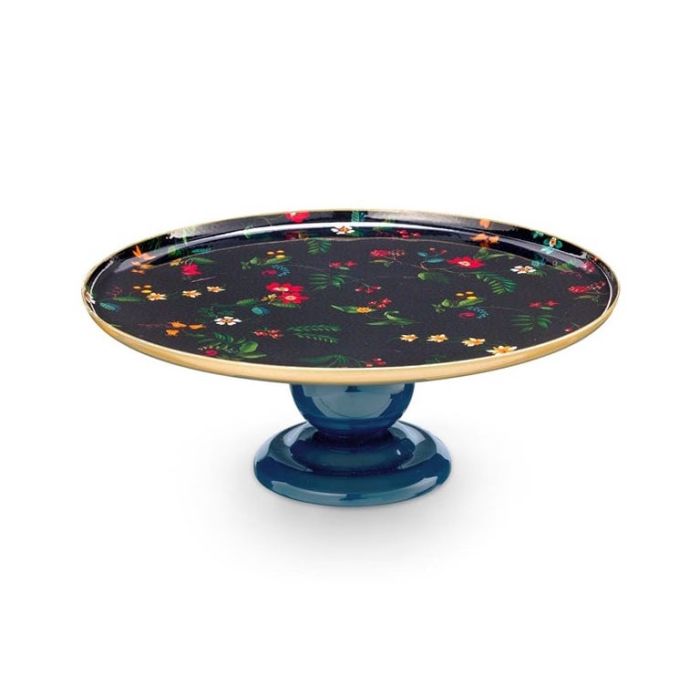 Breng kleur en elegantie naar je tafel met deze metalen serveerschaal uit de Berry Blues collectie van Pip Studio. Deze opvallende serveerschaal op voet is gemaakt van stevig metaal en afgewerkt met een schitterend bloemenpatroon in levendige rood-, oranje- en groentinten tegen een diepblauwe achtergrond. De goudkleurige rand geeft een luxe touch, terwijl de ronde voet zorgt voor stabiliteit en een sierlijke presentatie.