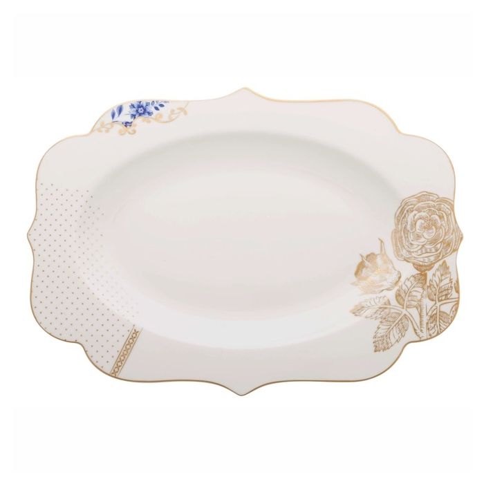 Ben je op zoek naar een artistieke manier om uw borrelhapjes, maaltijden en desserts te presenteren, kijk dan niet verder. De Serveerschaal van Pip Studio uit de Royal serie heeft alles wat u zoekt. Deze prachtige porseleinen schaal is voorzien van een elegante print, waardoor hij uw tafel een classy uitstraling geeft. De schaal meet 40 x 28,5 cm en hij past perfect bij uw unieke stijl. Creëer de perfecte mix en match look door de schaal te combineren met andere producten van de Royal collectie. De Serveerschaal van Pip Studio is niet magnetron- en vaatwasser bestendig, we adviseren om hem met de hand af te wassen. Breng gezelligheid aan tafel met de Serveerschaal van Pip Studio.