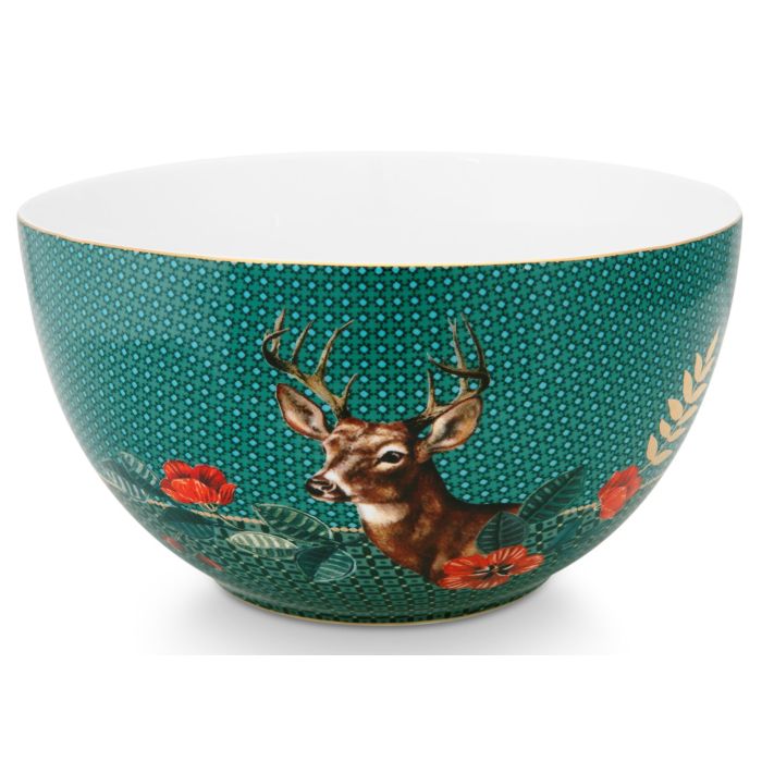 De Pip Home Winter Wonderland 18cm kom is met zijn groene design en bloemenprint met een hert een mooie kom om je favoriete sla, tomaten-, linzen-, of pompoensoep in te serveren. De kom is gemaakt van porselein, een stevig materiaal dat minder snel afbrokkelt dan 'gewoon' aardewerk. De afmetingen van de kom zijn 18 bij 18 centimeter.