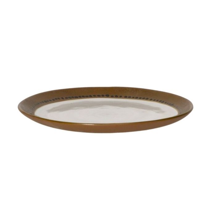 Het dessertbord (ontbijtbord) uit de geheel nieuwe Cycle-collectie van Pomax brengt de natuurlijke schoonheid van ambachtelijk vakwerk subtiel tot leven. De zachte, ronde vorm en het warme kleurenspel van crèmekleurig glazuur met een bruine rand creëren een rustgevende, aardse uitstraling. De fijne, handgeschilderde stippen langs de rand voegen een speels en verfijnd detail toe dat elke tafelsetting verrijkt.