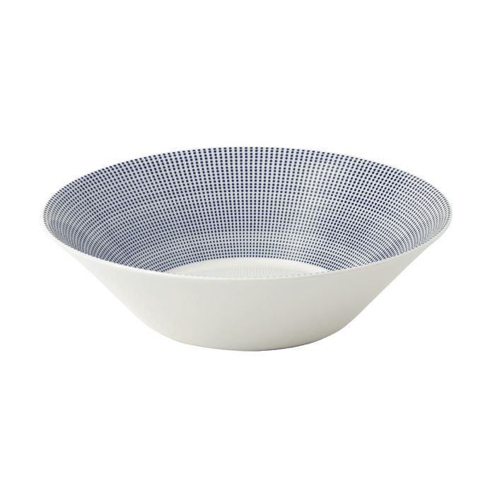 Serveer heerlijke salades met deze saladeschaal van Royal Doulton. Dit stijlvolle serveeritem maakt deel uit van de beroemde Pacific-collectie, geïnspireerd op de kustlijn en oceaan. Het diepe blauw met het stippenmotief op het frisse witte porselein zorgt voor een moderne en tijdloze uitstraling, perfect voor zowel dagelijks gebruik als speciale gelegenheden.