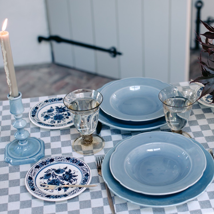 Welke kleur servies op tafel?