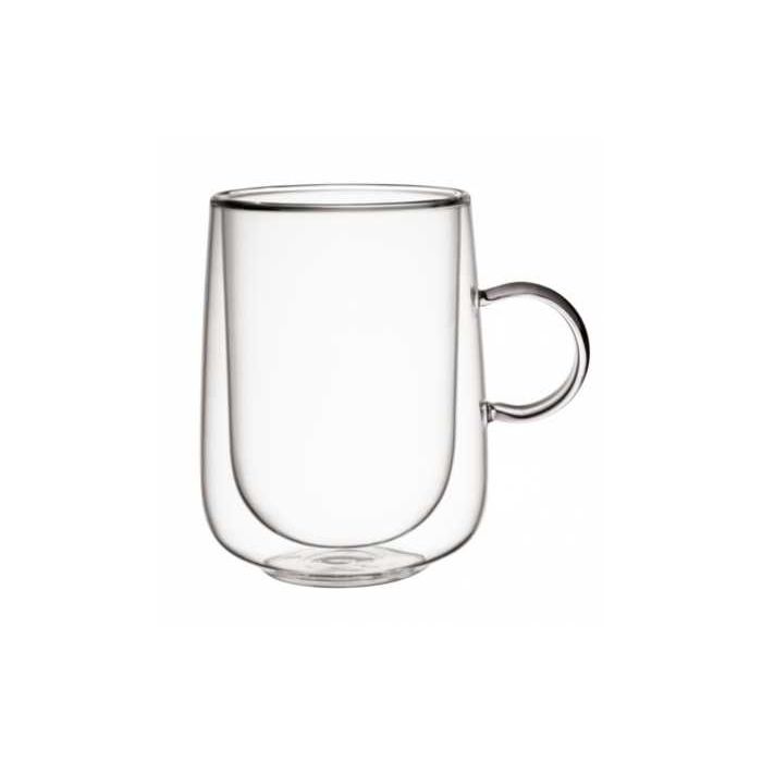 Het glas heeft een inhoud van 360 ml en is gemaakt van borosilicaat, een bijzonder type glas dat bekend staat om zijn hoge hittebestendigheid en duurzaamheid. Dit materiaal kan extreme temperaturen aan zonder te barsten en is ook resistent tegen chemische invloeden. De glazen zijn vaatwasser bestendig en kunnen daarnaast in de magnetron.