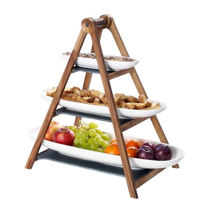 - 1 x Artesano Original Etagere van acaciahout en 3 leisteenplaten
