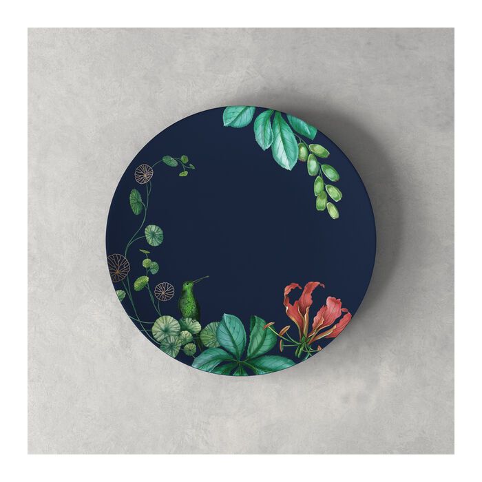 Het dessert-/ontbijtbord uit de collectie Avarua met zijn botanische motieven en zachte kleuren laat u genieten van uw favoriete eten terwijl u wegdroomt van een paradijselijk oord als de Cookeilanden. Laat u meevoeren naar een wereld van paradijsvogels en exotische planten
