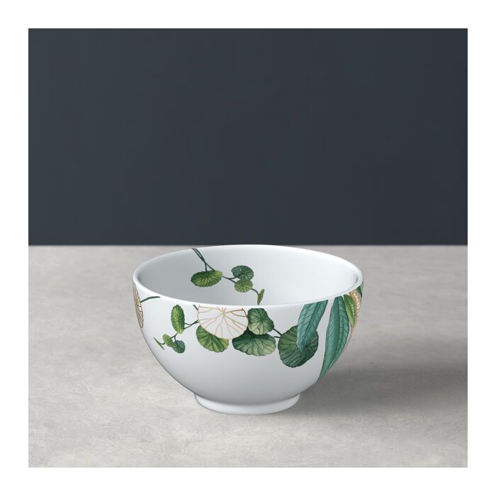 De rijst-bowl uit de collectie Avarua met zijn botanische motieven en zachte kleuren laat u genieten van uw favoriete rijstgerechten terwijl u wegdroomt van een paradijselijk oord als de Cookeilanden. Laat u meevoeren naar een wereld van paradijsvogels en exotische planten