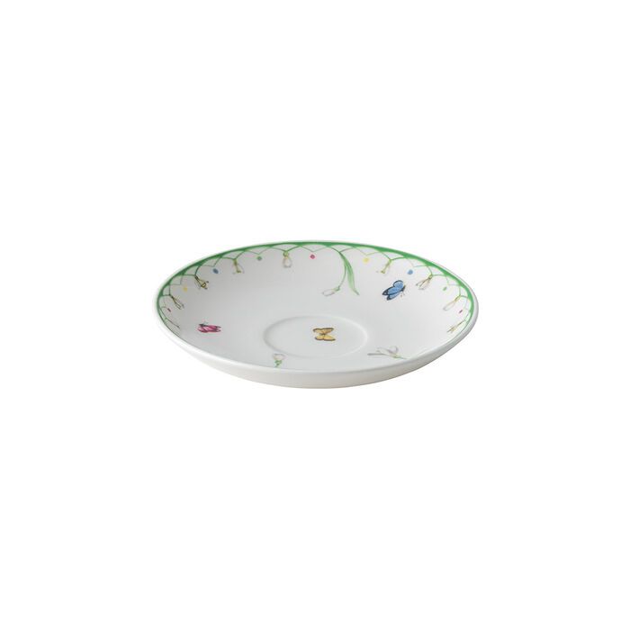 Onze tijdloos mooie collectie Colourful Spring zal u het hele jaar betoveren. De hoofdrolspelers op de prachtig gevormde artikelen zijn fijne sneeuwklokjes en kleurrijke vlinders. Deze geven de collectie vrolijke kleuraccenten en fleuren elk bewolkt moment op. Klein, sterk, lekker - houdt u ook van de Italiaanse koffiedelicatessen? Met deze schotel, die perfect past bij het bijbehorende espressokopje, serveert u uw espresso in stijl. Geniet elke dag opnieuw van dit lenteachtige ontwerp.