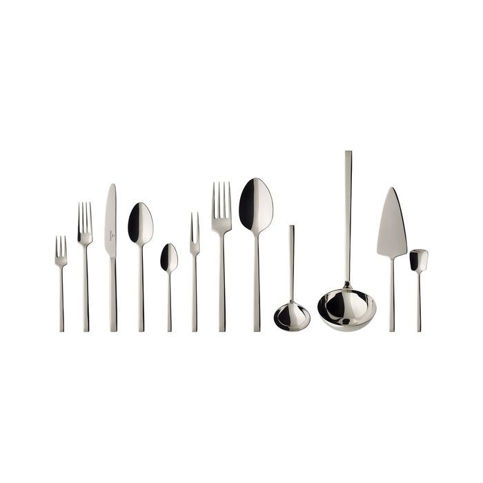 De hoogwaardige en elegante bestekcollectie La Classica van Villeroy & Boch voldoet aan de hoogste eisen op het gebied van design, functionaliteit en stijl. Verwen uw gasten met tijdloos bestek van hoogwaardig en onderhoudsvriendelijk roestvrij staal. De set bevat naast het klassieke tafelbestek ook koffielepels, keukenvorken, serveervorken en een taartschep. Als u het hoogwaardige bestek niet nodig heeft, kunt u het bewaren in de fraaie cassette. Set bestaat uit: