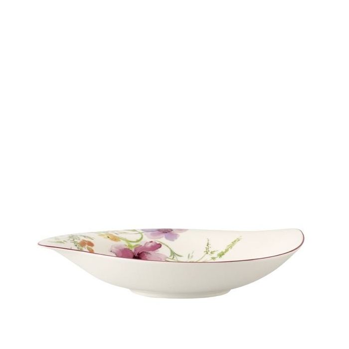 De frisse, krachtige kleuren van Mariefleur Basic zorgen voor een kleurrijke bloemenzee op uw tafel. De elegant gebogen vormen van het porselein maken het bereiden en serveren van uw gerechten nog mooier. Een verse salade 's middags of een uitgebreide bijlage bij het avondeten; met deze serveerschaal zit u altijd goed. Breng de zomer op tafel.