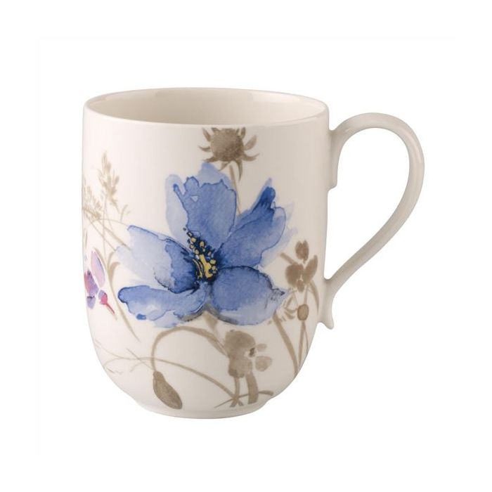 De subtiele kleuren van Mariefleur Gris creëren een zee van bloemen in blauw en grijs op uw tafel. De elegant gebogen vormen van het porselein maken het bereiden en serveren van uw gerechten nog mooier. Een verkwikkende koffie 's morgens of een gezellige thee in bed; deze handige beker maakt warme dranken tot een bijzonder genot. Geniet van uw Italiaanse koffiemomentje.
