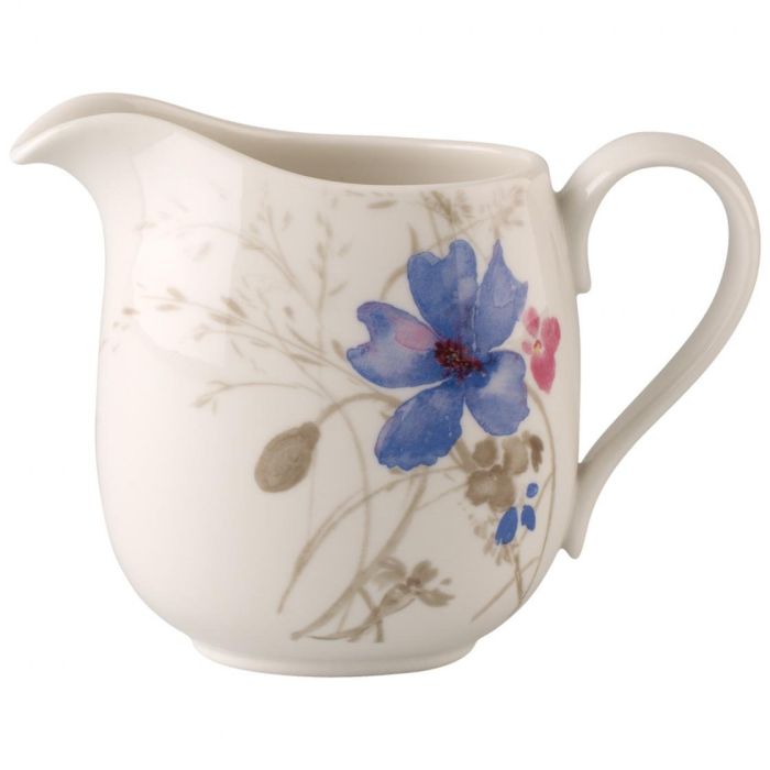 De subtiele kleuren van Mariefleur Gris creëren een zee van bloemen in blauw en grijs op uw tafel. De elegant gebogen vormen van het porselein maken het bereiden en serveren van uw gerechten nog mooier. Serveer uw gasten met dit mooie en praktische kannetje melk bij de koffie. Maak het koffiegenot perfect.