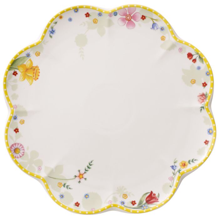Het Spring Awakening dinerbord van Villeroy & Boch brengt de kleur van het voorjaar op elegante wijze naar je tafel. Met zijn sierlijke en geel afgewerkte golfrand, en een kleurrijk decor van narcissen, sneeuwklokjes, klokjes en andere voorjaarsbloemen, straalt dit bord een charmante Paassfeer uit. De met zorg aangebrachte bloemmotieven en het verfijnde porselein maken dit bord tot een echte blikvanger bij het paasontbijt, brunch of diner.