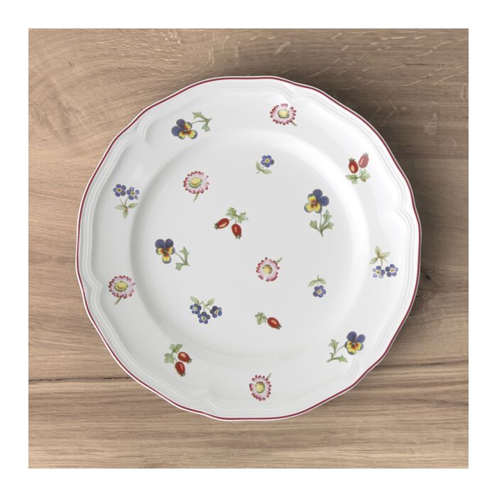 De klassiek gebogen vormen en speelse bloemdecoraties geven de populaire collectie Petite Fleur haar bijzondere, tijdloze charme. Begin de nieuwe dag met stijl en serveer lekkernijen bij het ontbijt of de brunch op het bord van Petite Fleur. De natuurgetrouwe bloemmotieven zoals bijvoorbeeld een viooltje, vergeet-mij-nietje of een madeliefje geven dit servies een lieflijk accent.