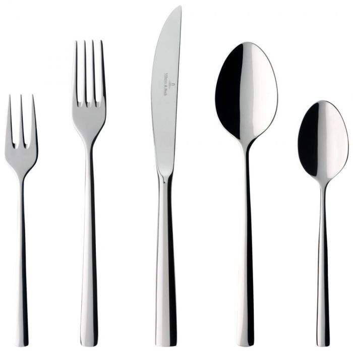 Hoogwaardige kwaliteit en modern design – dat is de bestekset Piemont van Villeroy & Boch. Rechte lijnen en eenvoudige elegantie kenmerken dit fraaie bestek uit de populaire Piemont-collectie. Dankzij het gladde, afgeronde ontwerp ligt het bijzonder prettig in de hand en is het een genot om te gebruiken.