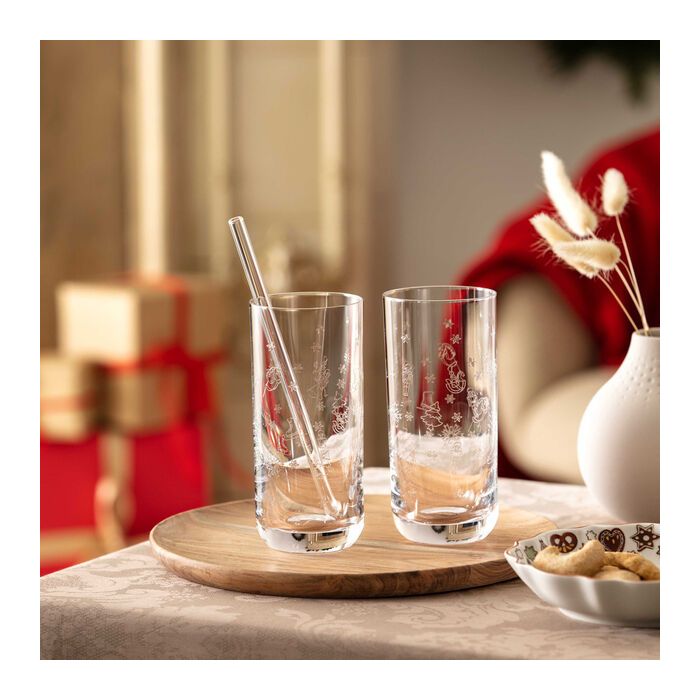 Dankzij de speciale vorm en de hoogwaardige decoratie is de tweedelige longdrinkglas-set perfect voor het serveren van kerstcocktails, mocktails en andere verfrissende dranken.