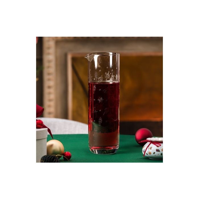 Breng een vleugje kerstmagie naar je feesttafel met de Toy's Delight waterkaraf van Villeroy & Boch. Deze stijlvolle karaf is vervaardigd uit hoogwaardig kristalglas en versierd met speelse, klassieke kerstmotieven zoals hulstblaadjes, sterren en speelgoedfiguren. Het vrolijke ontwerp maakt van elk drankje een feestelijk moment, of je nu water, sap of een winterse punch serveert.