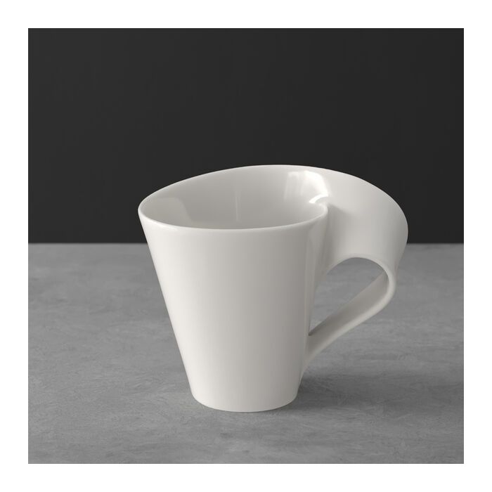 Lekkernijen worden optisch in scène gezet, het elegante golfdesign maakt het daarbij bijzonder leuk. Zet accenten tijdens de koffiepauze en beleef aangename momenten met het grote kopje NewWave Caffè met gebogen oor.