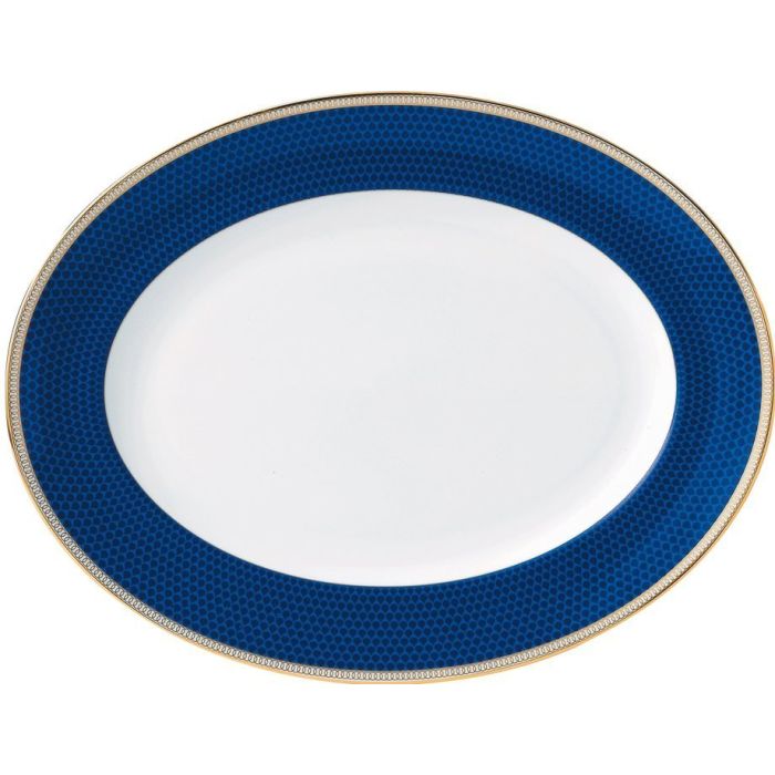 Deze serveerschaal heeft een chique print met een echt gouden randje. Deze print heeft Wedgwood in 2015 nieuw leven in geblazen, nadat het in 1810 ontworpen is.
