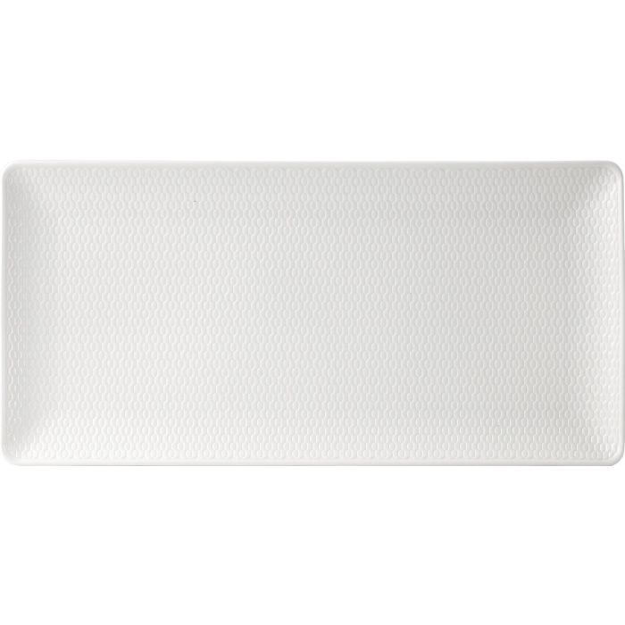 De Wedgwood serveerschaal uit de iconische Gio-serie is een stijlvol en functioneel item dat perfect is voor het presenteren van voorgerechten, brood, hapjes of bijgerechten. De langwerpige vorm ( 32 x 16 cm) maakt deze schaal ideaal voor een moderne en elegante tafelschikking. Gemaakt van hoogwaardig Fine Bone China en voorzien van een subtiel geometrisch reliëf, straalt de schaal pure verfijning uit.