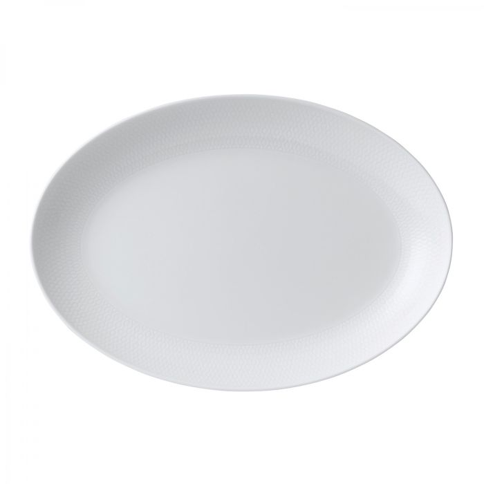Deze ovalen schaal van Wedgwood uit de befaamde Gio-serie is een stijlvolle keuze voor het presenteren van je gerechten. Gemaakt van fijn Bone China en voorzien van een subtiel geometrisch reliëf, straalt de schaal een ingetogen elegantie uit die past bij zowel dagelijks gebruik als een verzorgde tafelsetting.