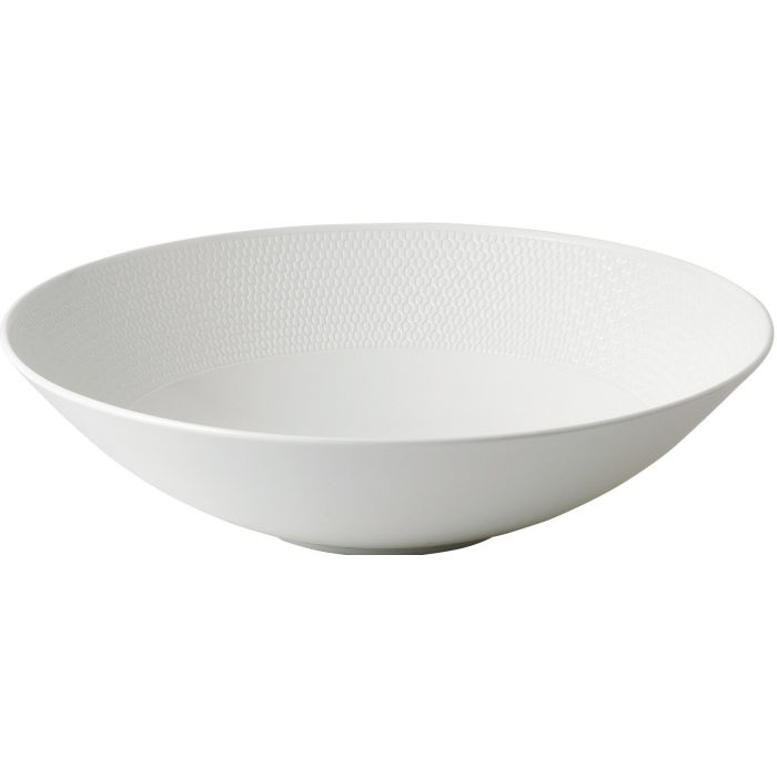 De Wedgwood saladeschaal uit de befaamde Gio-serie combineert moderne elegantie met praktisch gebruiksgemak. Deze ruime schaal, met een diameter van 28 cm, is ideaal voor het serveren van salades, pasta’s, groentegerechten of zelfs als decoratief middenstuk op tafel. Gemaakt van hoogwaardig Fine Bone China, en voorzien van het kenmerkende geometrische reliëf langs de rand, straalt de schaal verfijning uit zonder opdringerig te zijn.