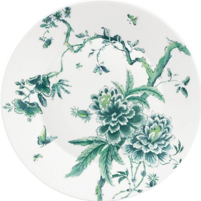 Een reis door de Orient met het Wedgwood Jasper Conran Chinoiserie servies Chinoiserie Green: 18-eeuwse Britse patronen uit het oosten geven een nieuwe interpretatie aan dit exclusieve servies met exotische bloemen, gebladerte en vogels tegen een rijke achtergrond omlijst met platina Stelt u zich eens voor een houten tafel met kleurrijke bloemen, zilveren bestek en wit linnen.