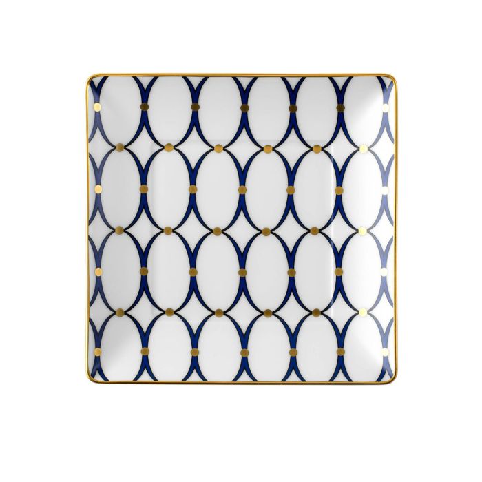 Dit vierkante dessertbord uit de Renaissance Gold-collectie van Wedgwood combineert elegantie en functionaliteit. Met een diameter van 14,5 cm is het ideaal voor desserts of kleine hapjes. Het bord, gemaakt van hoogwaardig bone china, heeft een diepblauw-kobaltkleurig patroon met delicate gouden accenten en een laurierkrans van 22-karaats goud, geïnspireerd op klassieke Wedgwood-ontwerpen.