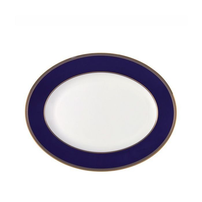 Deze mooie grote serveerschaal van fine bone china is zeer geschikt om te gebruiken tijdens formele gelegenheden. De koningsblauwe kleur geeft de schaal een vorstelijk allure.